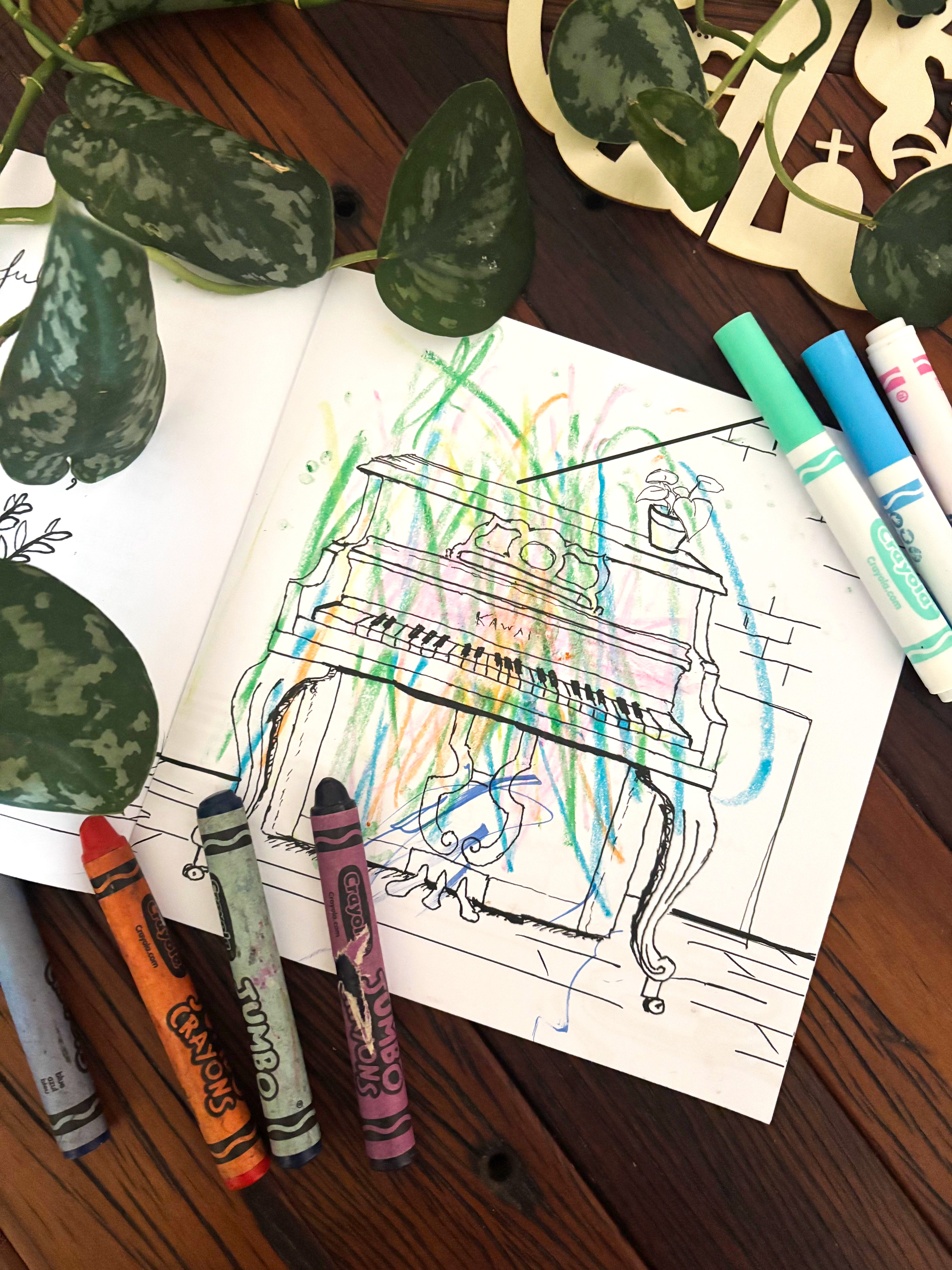 But what’s definitively also true is that the process of working through all the places this song could go was extremely playful and fun. It was an interesting challenge to pass a single pour of molten metal through multiple different molds and treatments. We allowed ourselves to try new things and stretch aspects of our arranging and production techniques in the process. At the very least, it was a valuable learning exercise. It even inspired me to create a coloring book based on the musical idea (which you can check out here).